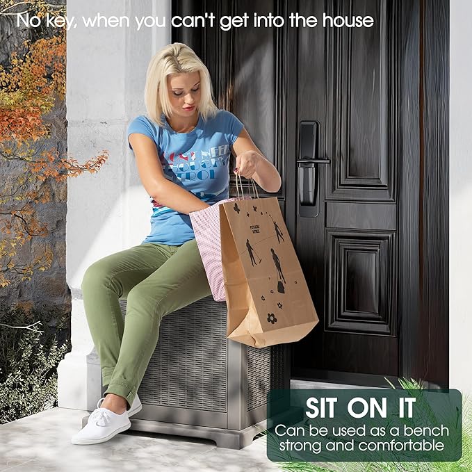 - 🎉 【Ultimate Versatility】 Perfect for both indoor and outdoor use. Use these outdoor storage box as package delivery boxes, deck storage, garden bins, patio organizers, hose holders, or even as storage benches, side tables, or patio tables.
