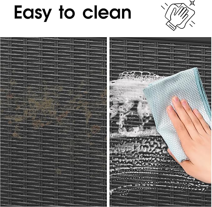 - 🏕️ 【Premium Weatherproof Material】 Made from high-density PP resin, these outdoor storage box are waterproof, sunproof, and dustproof. The stylish rattan-like texture adds a modern, elegant touch to any space.