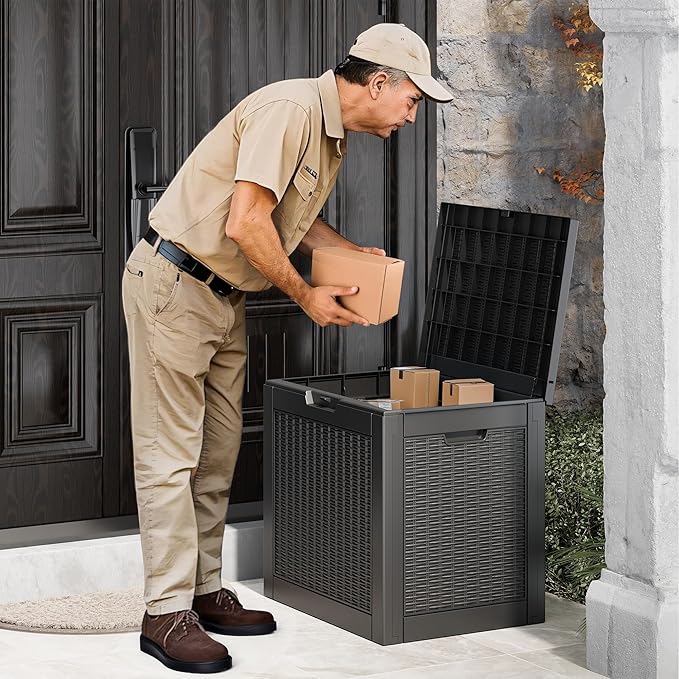 - 🎉 【Ultimate Versatility】 Perfect for both indoor and outdoor use. Use these outdoor storage box as package delivery boxes, deck storage, garden bins, patio organizers, hose holders, or even as storage benches, side tables, or patio tables.