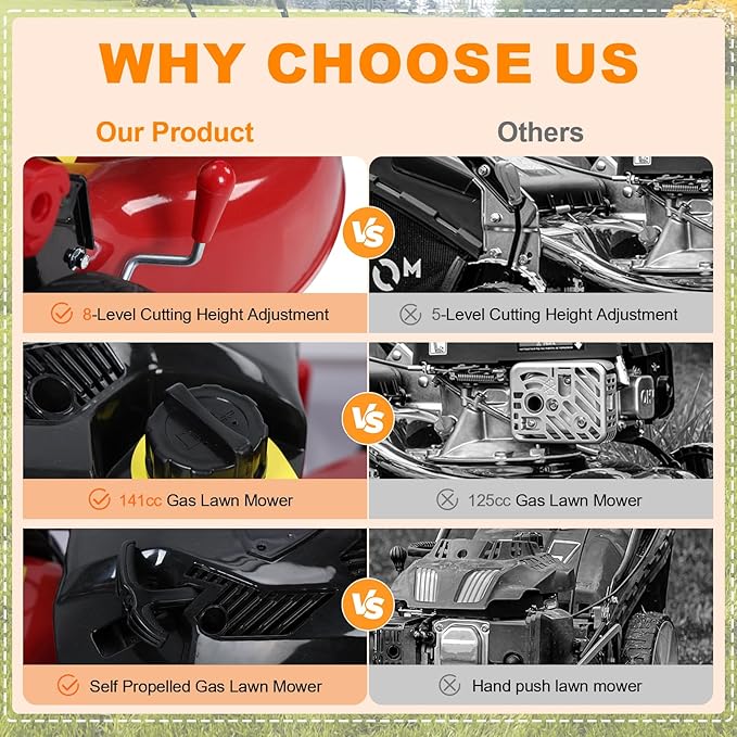 - ๐ฅใ๐๐๐๐๐ ๐๐๐ ๐๐ง๐ ๐ข๐ง๐ ๐ฐ๐ข๐ญ๐ก ๐๐ข๐ซ ๐๐จ๐จ๐ฅ๐ข๐ง๐ ใPowered by a robust 141cc 4-stroke OHV engine that delivers 9.0 ftยทlb of torque, this gas-powered lawn mower ensures efficient and reliable performance every time.