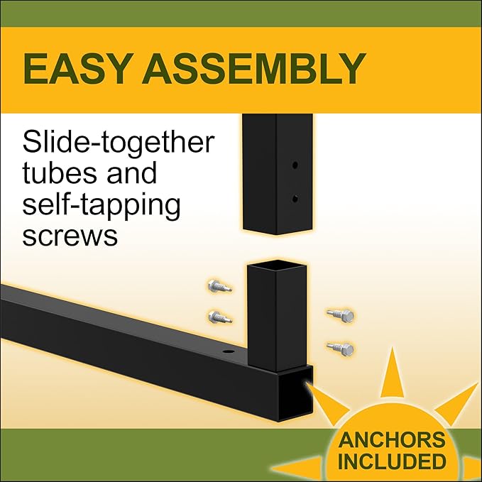 - [EASY ASSEMBLY] This all-steel carport assembles easily with a series of slide-together tubes and self-tapping screws. The roof system is sealed with weather-proofing tape to keep stored items nice and dry. Included anchors hold the unit in place after your installation is complete.