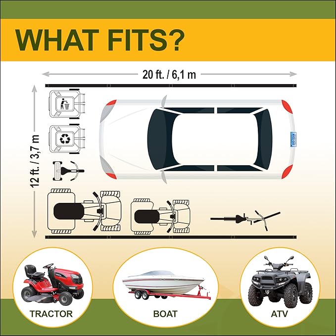 - [VERSATILE ALL-WEATHER CANOPY] Provides 234 sq ft/1792 cu ft of protection from snow, rain, and sun. The all-seasons unit protects whatever you decide to cover β cars, trucks, patio spaces, etc.