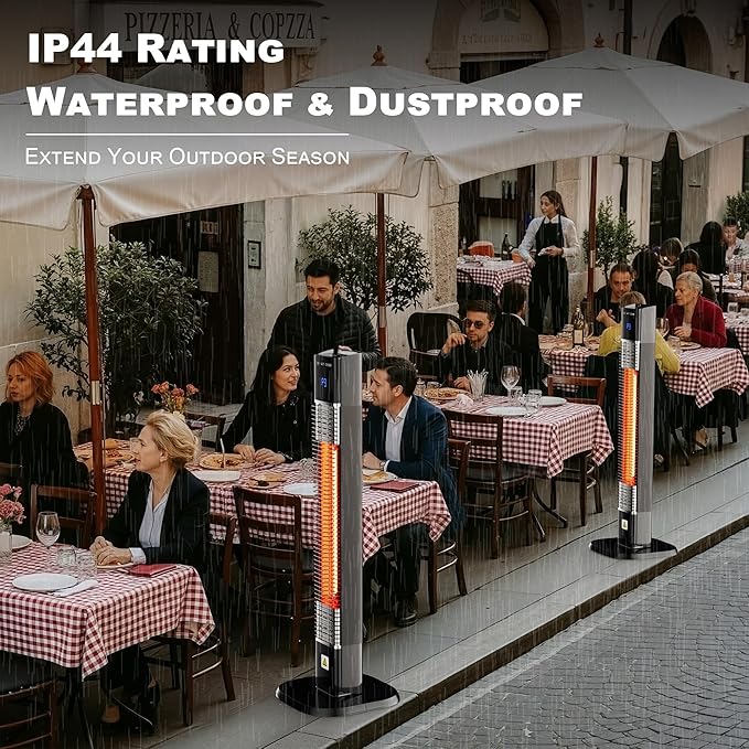 - 24H TIMER: To avoid potential safety hazards and save energy, you can set a time from 1-24 hours with the outdoor electric heater. The infrared heater is great for noise-sensitive environments because it doesn't use a fan- it just heats light