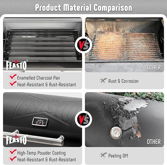 - Heavy-Duty & Movability BBQ Charcoal Grill: Designed with reinforced heavy-duty legs for superior stability and durability, also features two sturdy wheels for effortless mobility. Perfect for grand outdoor BBQ gatherings