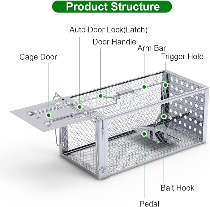 - Easy to Use: Simply bait, set the trigger, and place. Check regularly to release or handle captured rodents appropriately.