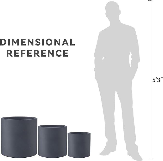 Kante 9.8",12.6",15.7" Dia Round Concrete Planter Set of 3, Modern Style Large Cylindrical Plant Pot with Drainage Hole and Rubber Plug for Indoor Outdoor Patio, Dark Gray