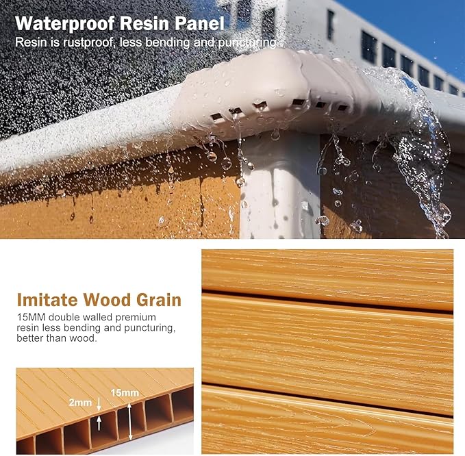 - 【PREMIUM RESIN MATERIALS SHEDS】 Our durable storage shed is crafted with 15MM premium polypropylene resin plastic, which is thicker than others in the market. Resin shed is waterproof, rustproof and UV-resistant, less bending and puncturing, worry-free for use in all weather conditions. It is a great shed house for your backyard, patio and garden