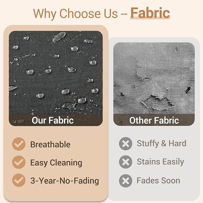 - Texture Woven Fabric: Selected yarn dyed woven fabric, the yarns are dyed and treated before woven into fabric for out door fading resistant and water repellent. Looks and touches with high-end woven texture. No more worry about getting cheaply made thin print fabric.Daily use 3 years no fading. Detachable & washable