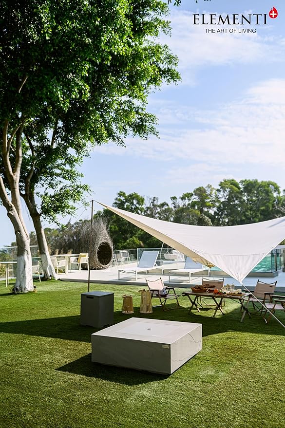 Elementi+ | Bergen Gas Fire Pit Cast Concrete 40" Square Fire Table, Outdoor Fire Pit Electronic Ignition | Canvas Cover, Fire Glass and Burner Lid Included | Dark Gray | Natural Gas
