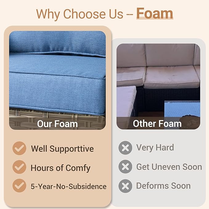 - All Weather & Durable: Selected anti-ageing treated thicken PE wicker rattan for UV resistant, wear resistant and all weatherproof. 3D strengthen and widen design for extended service life,twice service life as others