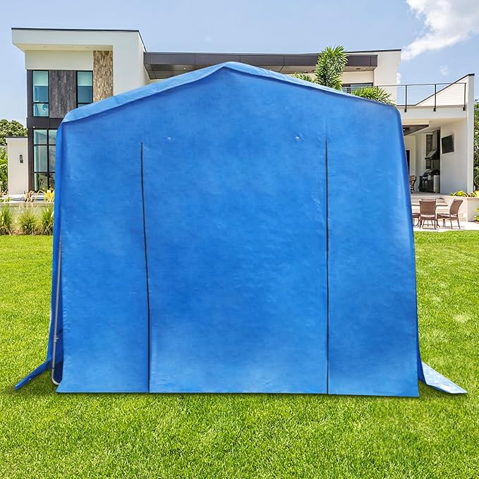 - 【Convenient Roll-Up Door & & Easy Access】This waterproof canopy shed shelter features a practical roll-up door with tie ropes for quick and flexible entry and exit. This user-friendly design allows you to secure the shelter easily while offering full access to your equipment without hassle.