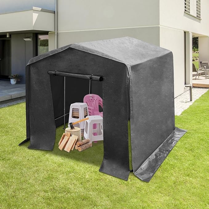 - 【Convenient Roll-Up Door & & Easy Access】This waterproof canopy shed shelter features a practical roll-up door with tie ropes for quick and flexible entry and exit. This user-friendly design allows you to secure the shelter easily while offering full access to your equipment without hassle.