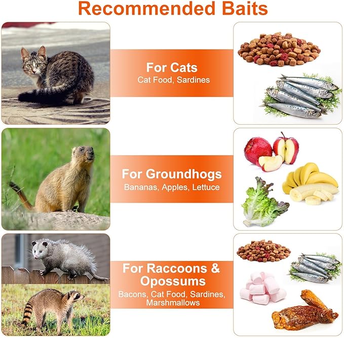 - Humane Design: Equipped with a sensitive trigger and spring-loaded front door, the trap activates on light pedal touch for swift closure upon entry. A rear door enables easy, humane release of captured animals.