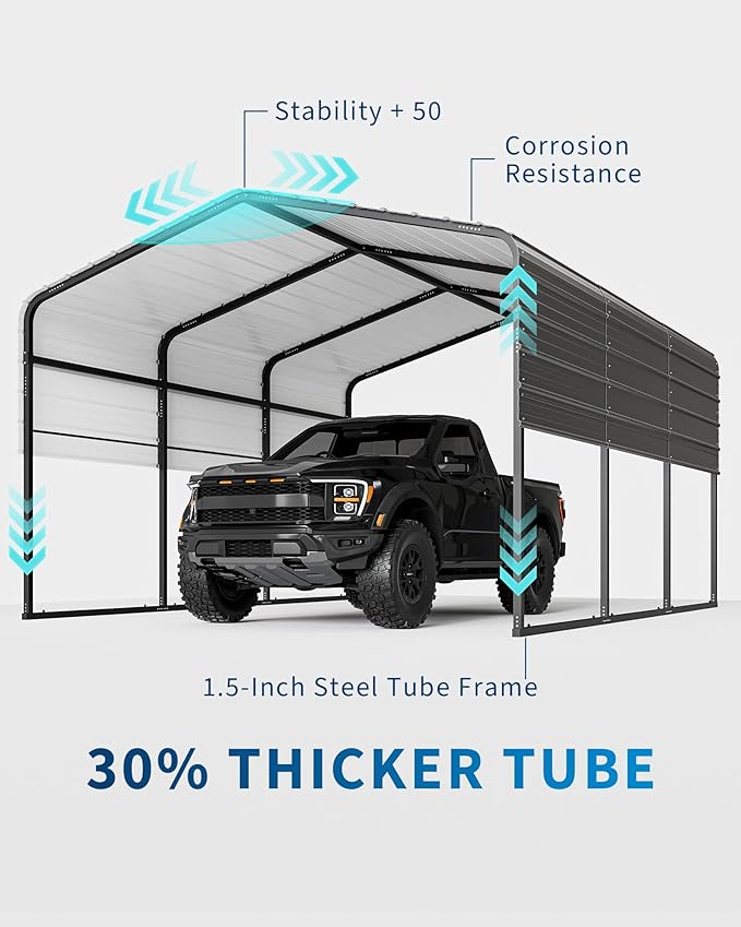 - 【Superior Strength】Crafted from premium square steel tubing, the frame features reinforced joints that deliver exceptional sturdiness and adaptability. Its robust construction offers outstanding structural stability, enabling the carport to endure diverse weather challenges.
