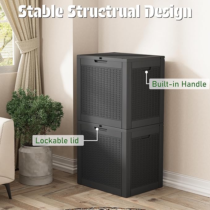 KAMABOKO 31 Gallon Outdoor Storage Box 2 Pack All-Weather Deck Box for Patio Furniture, Package Deliveries, Garden Tools, Pool Supplies & Cushions, Black