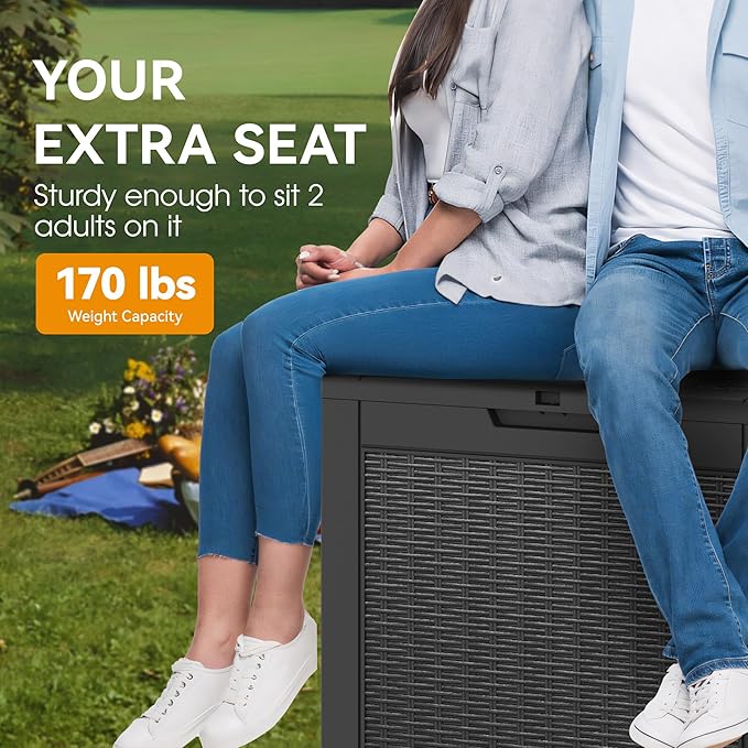- 📦【31-Gallon Large Capacity】Approx. 22.1" x 17.1" x 20.8" spacious interior easily stores garden tools, pool accessories, cushions, and other outdoor essentials—keeping everything tidy at a glance.
