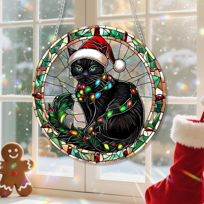 - Santa Claus Suncatchers-The size of the Sun Catcher is 8 "x 8" and you can place it in Windows, outdoor balconies, and outdoor Windows. This colored glass decoration is perfect for home decoration or as a creative gift for Friends.
