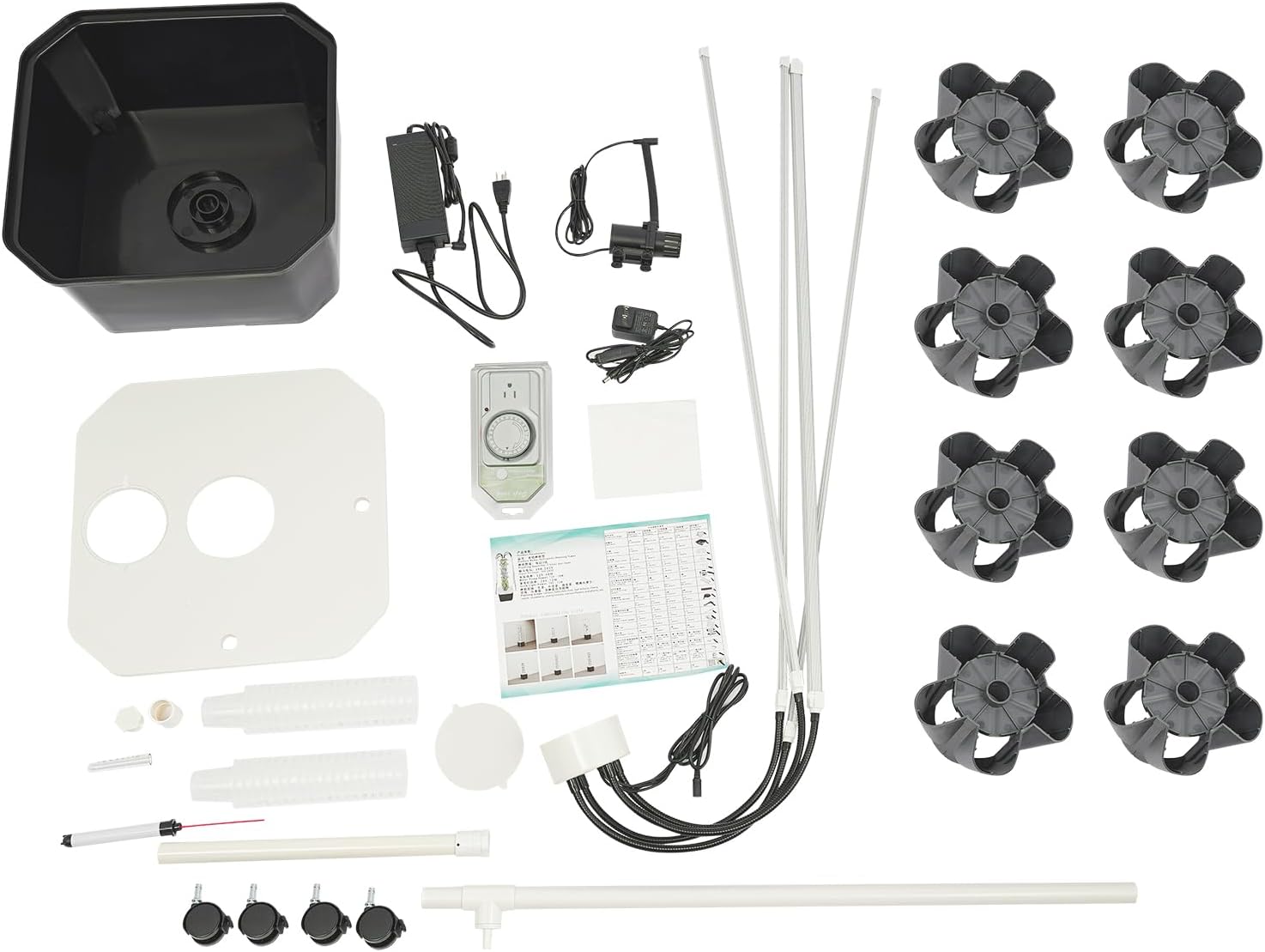 - 【AUTOMATED OPERATION & USER-FRIENDLY CONTROLS】The system runs automatically once connected to power and water, with a pump cycle of 1-minute ON / 5-minute OFF to optimize root health and resource use. A clear water level gauge enables easy monitoring, and full-spectrum LED lights support photosynthesis, suitable for all grower levels.