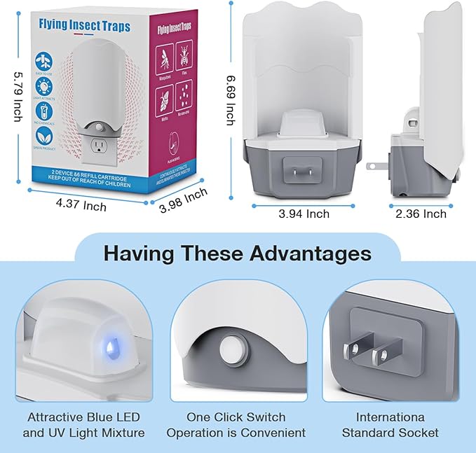 - Rapid Action: Harnessing specially designed blue and UV light, this trap quickly attracts and captures flies, fruit flies, moths, gnats, and other pesky flying insects