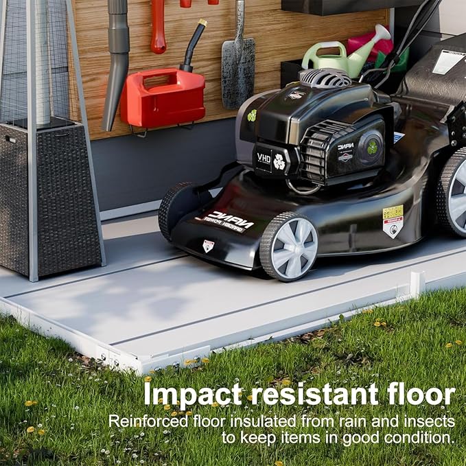 - 【Premium and Durable Material】The 14mm tough double-wall resin construction, 0.6 mm galvanized steel frame and impact-resistant floor are designed for long-term durability. The double-wall panels are waterproof and moisture-proof, allowing worry-free use in all weather conditions. It is weather-resistant, waterproof, and UV-resistant-no peeling, rotting, or rusting. The screws are embedded to ensure aesthetics and safety