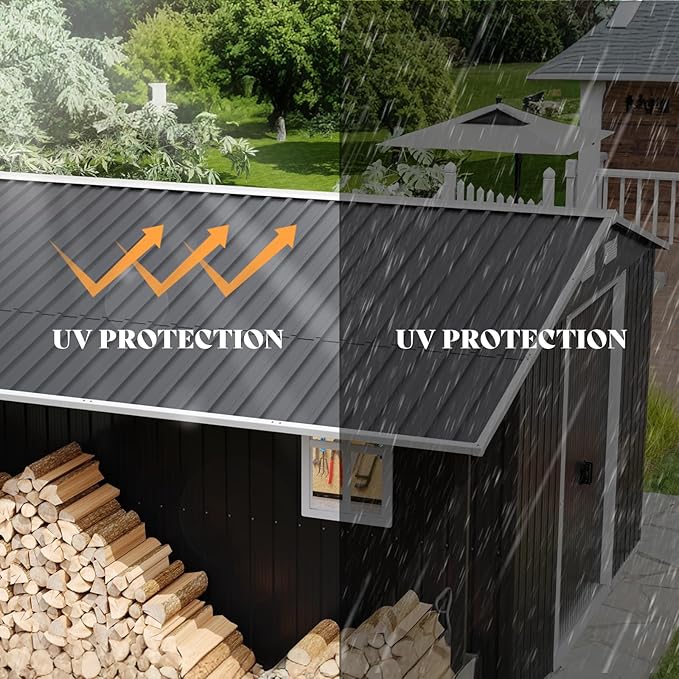 - Weather-Resistant Galvanized Steel Shed: Constructed with 0.25 mm galvanized steel panels, rust-resistant coating, and sturdy framing, offering year-round protection from rain, snow, and harsh UV rays