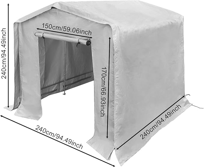 - 【Heavy-Duty Metal Frame & All Weather Protection】Constructed with a robust metal frame and thick PE waterproof cover, this outdoor storage shed offers superior defense against rain, UV rays, and dust. The spray-coated finish resists rust and wear, ensuring long-lasting shelter for your motorcycle, lawn mower, or ATV in harsh conditions.