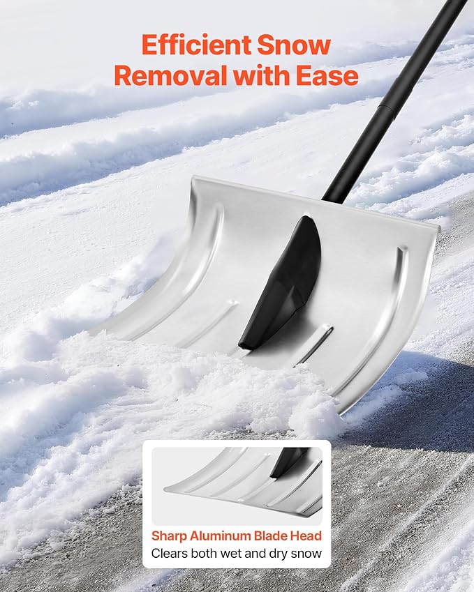 - Efficient Snow Shoveling: This snow shovel for driveway features a 15.7 x 16.9 in sharp and widened aluminum blade to clear large areas of snow. Ideal for driveways and walkways, it reduces repeated effort and improves snow shovel efficiency